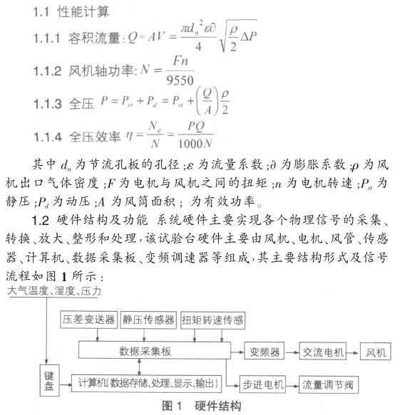 本系統(tǒng)參照國家標準GB 1236- 85《通風機空氣動力性能試驗方法叫采用孔板壓差法測量流量、扭矩法測量功率、變頻調(diào)速器改變風機轉(zhuǎn)速、步進電機控制錐形節(jié)流閥調(diào)節(jié)工鞏等方法進行通風機出氣風管性能試驗